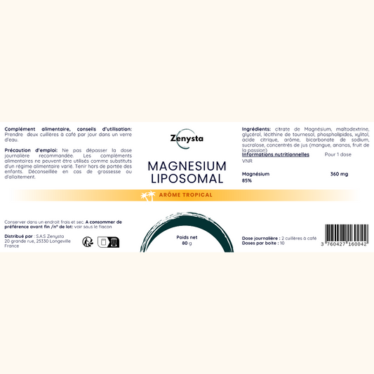 Un complément alimentaire liposomal est un produit dans lequel le principe actif est encapsulé dans des liposomes (microsphères de graisses). Cette forme permet une meilleure absorption, protège le nutriment lors de la digestion, et favorise son transport vers les cellules. Résultat : une efficacité renforcée par rapport aux formes classiques.